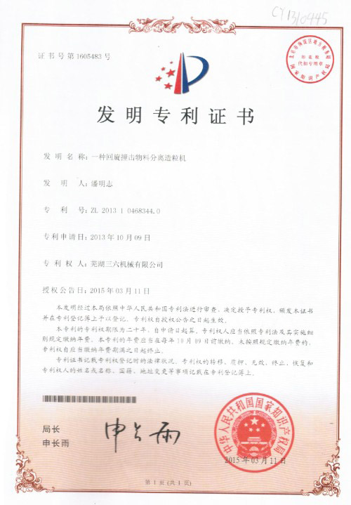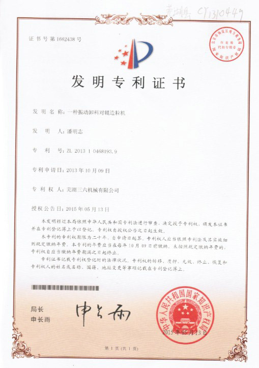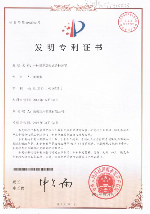 發(fā)明專(zhuān)利證書(shū)